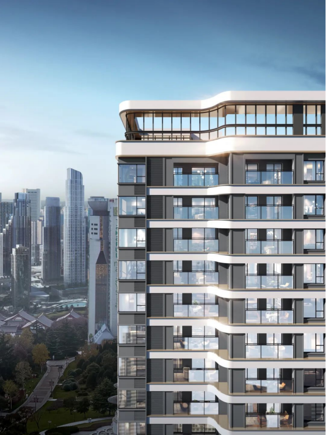 区别于普通住宅外立面设计上的固化和沉闷,信达·雁熙雲著项目则进行了升级和创新。项目将汉唐色彩与现代风格有机融合,让建筑层次更加丰富,同时,外立面融入曲线元素,通过圆角造型的设计让视觉感官更加时尚灵动,外立面的颜值瞬间上了一个档次。