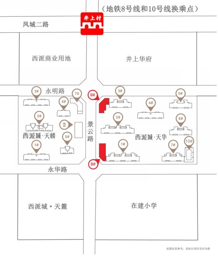 同时8号线是西安唯一地铁环线,串联了已经建成的2、3、4号地铁线,8号线预计25年建成通车,10号线预计24年底建成通车,途径五大行政区以及五大开发区,真正做到了通达全城。依托核心站点,未来将具备交通枢纽的质素,形成地铁上盖的多元业态。