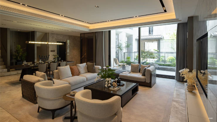 中式坡屋顶再创新,与现代感大平层相互呼应