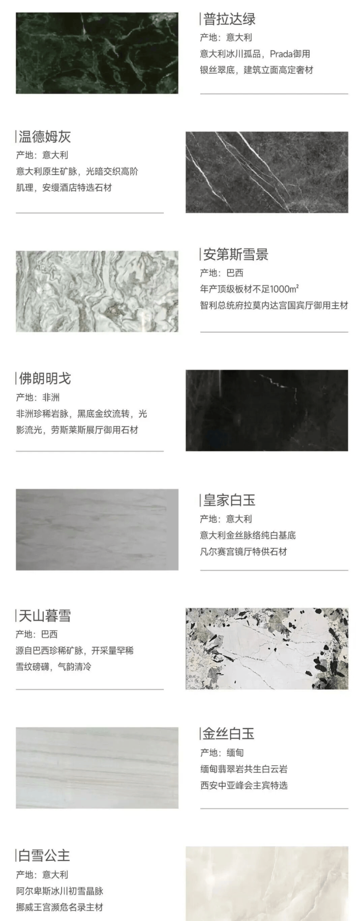 甄选全球逾20种珍稀石材