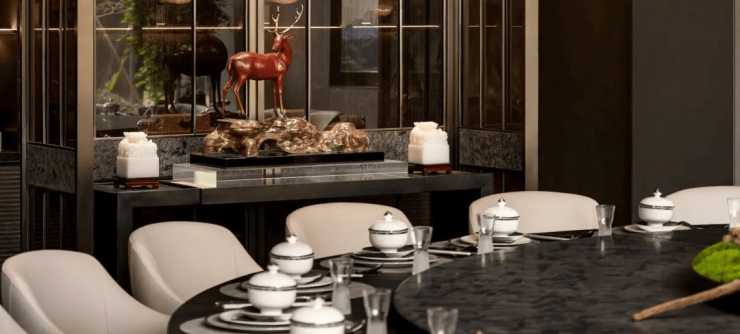 建筑锻造上崇尚自然洒脱的极简东方美学风格,重檐屋顶架构、辉映一道色彩清淡雅致的建筑特质,高窗墙比的立面和当代材质的运用,彰显稳重单纯、清淡高雅之感,为高新CID未来之瞳豪宅区,缔造一座时代屋脊。