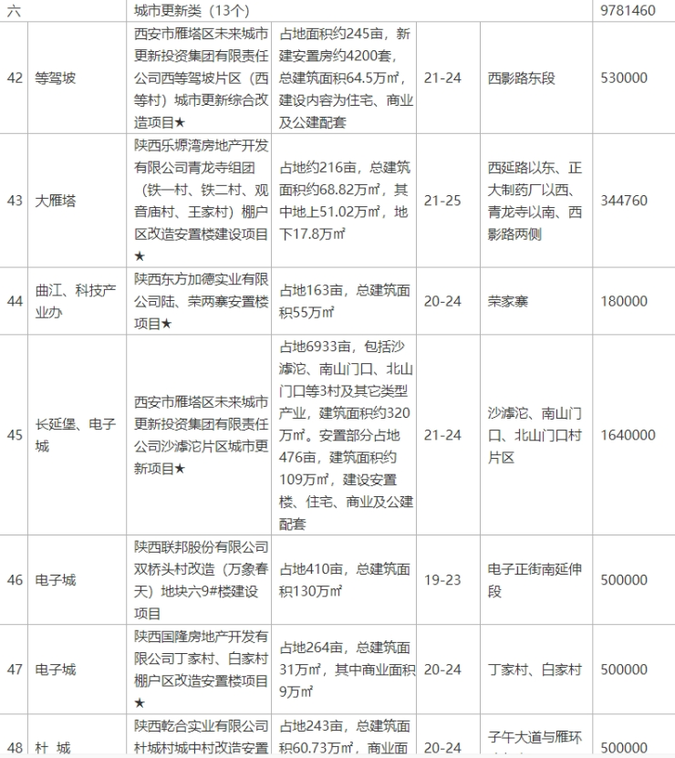 另外,根据雁塔区此前已公示的重点城市更新项目计划,虽然大部分项目已经按照时间周期有序推进,但仍有个别项目未完成,比如青龙寺组团,周期为21-25年,相信今年会有更实质性的动作。