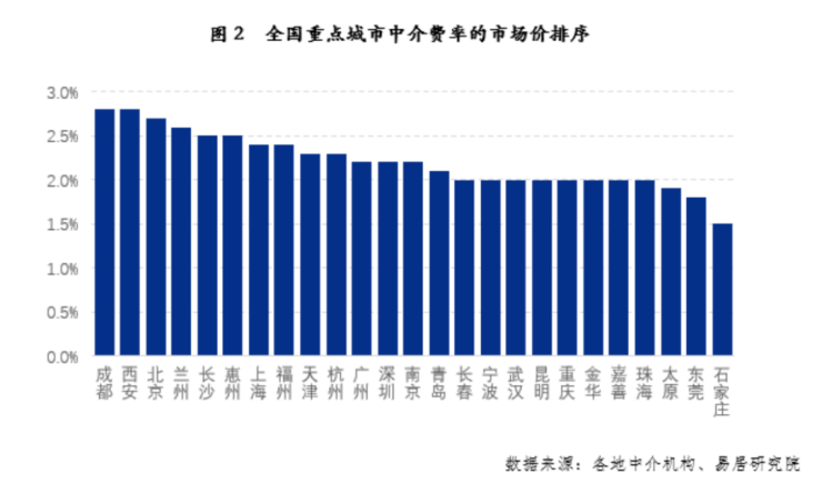 6月份,易居研究院发布的一份数据显示,全国25个重点城市中介费率平均值为2.2%,而西安的中介费以2.7%,位居全国前列。