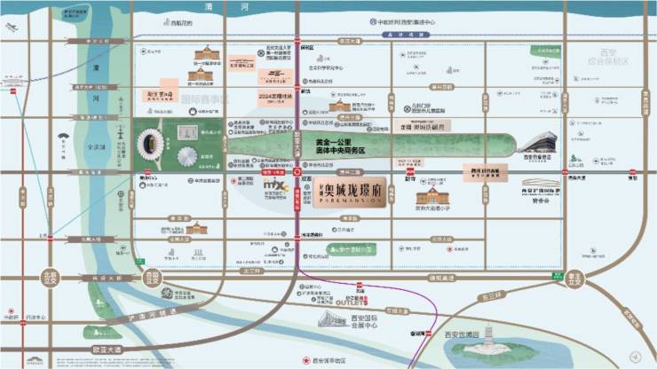 文旅IP:西安奥体中心、西安热雪奇迹。生态公园:7.2公里奥体中央公园、奥体光影文化公园、新寺遗址公园、家门口自建城市公园-珑璟公园PARK。优质医疗:西安市儿童医院儿科门诊、交大一附院国际陆港医院