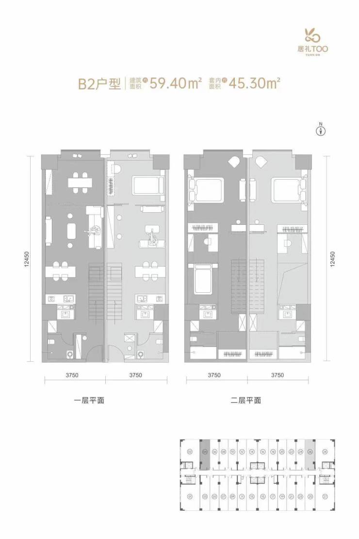 建筑面积约55-110㎡ 5.45米层高双维空间