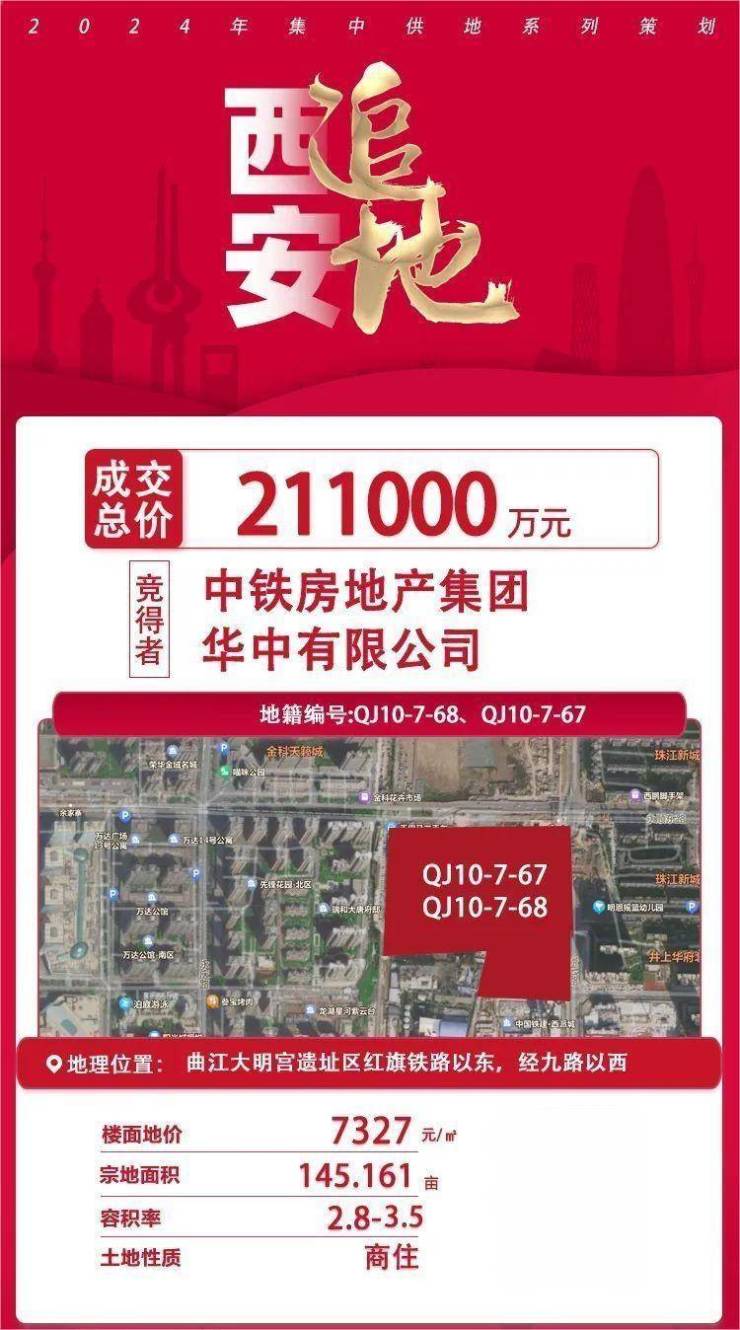 西安3宗地成交 中铁建摘大明宫145亩地 陕西垚乾房地产曲江拿地