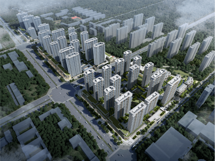 位于港务区政经板块,南侧为华南城,东侧是陕师大陆港小学、陆港第三幼儿园,毗邻地铁14号。项目占地约82.4亩,容积率2.5。