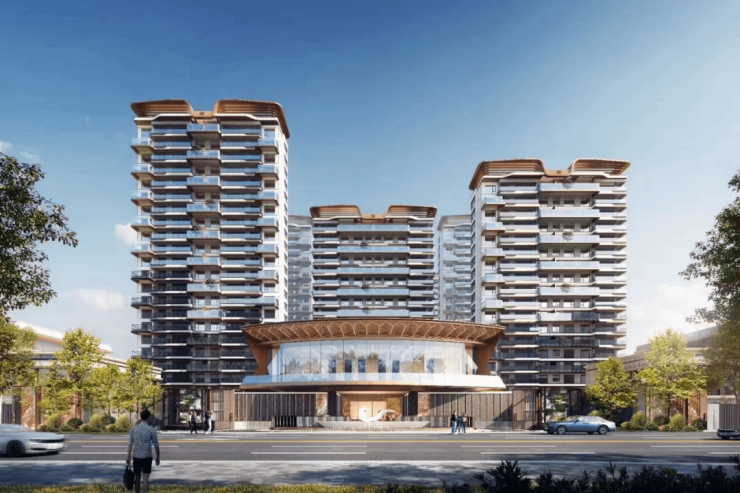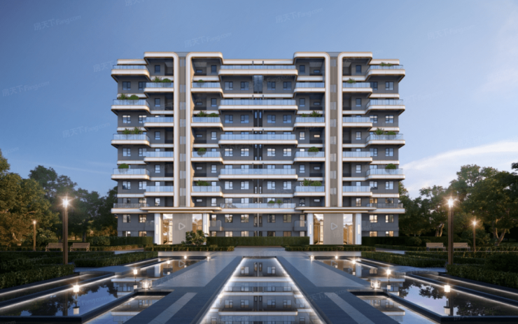 项目特别邀请上海大椽建筑设计事务所、梁志天设计集团、GVL怡境国际三大设计团队联袂执笔,采用了15°围合式布局,“玻璃幕墙+铝板材质”打造现代简约风格立面,打造了超20000㎡新亚洲度假酒店式园林和约9m挑高钻石会所。