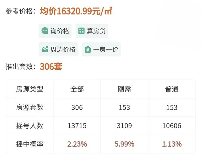 从开盘情况来看,项目共有2次“万人摇”,在去年4月推出306套收官之作,建面约161-491㎡,均价16320元/㎡,最后吸引了13715人摇号,综合中签率仅2.23%,你摇中了吗?