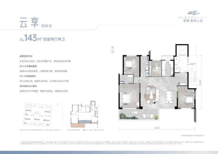 作为板块内少有的第四代住宅产品,「建面约143㎡户型」分为“云逸”、“云享”两款。