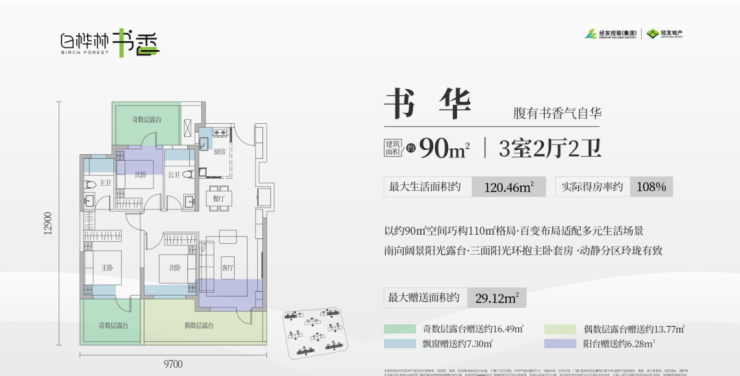 【产品类型】约90㎡/120㎡/138㎡低密小高层