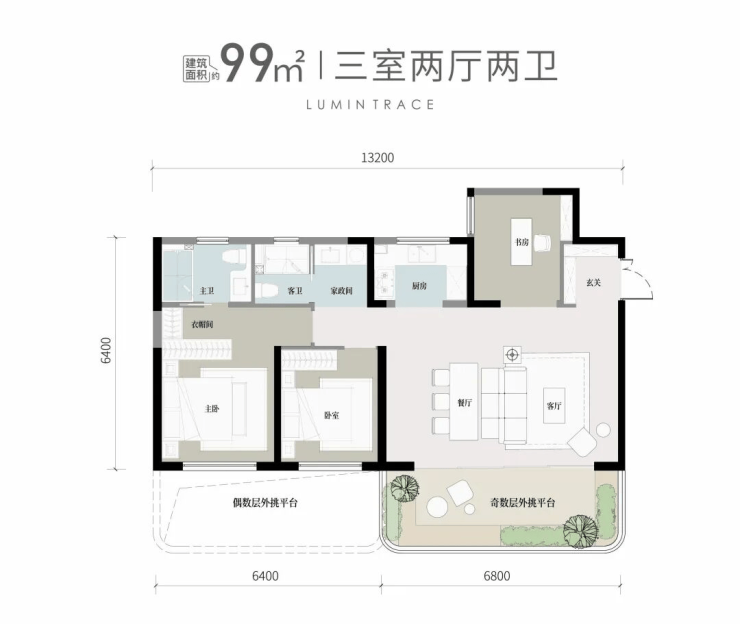 铝板幕墙(四个主可视面+露台内墙立面均为铝板设计,可视颜值拉满)