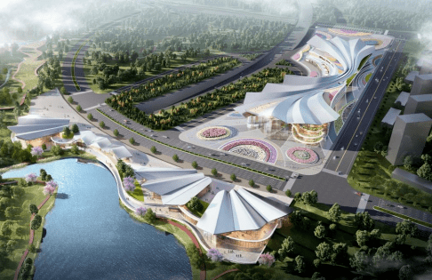 花卉国际博览交易中心项目总投资额45亿元,选址于锦堤五路以南,华文路以东,打造集鲜花科研、展示、交易、旅游、购物为一体的文化综合体及配套,全面建成后,将带动就业3000余人,实现年均产值超25亿元,年利税超2亿元。与华夏文旅西安度假区、砂之船(西安)奥莱、西安世博园及西安千古情景区充分融合,构成个性鲜明的浐灞文商旅产业新消费带。