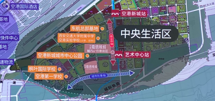 在地铁14号线艺术中心站和空港新城站之间,空港规划了商业轴线,截止目前除了原苏宁广场项目,其余多个项目主体均已呈现。