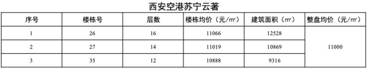 年前,空港苏宁云著项目价格公示,3栋小高层,共291套房,户型面积约95-137㎡,均价1.1万/㎡。