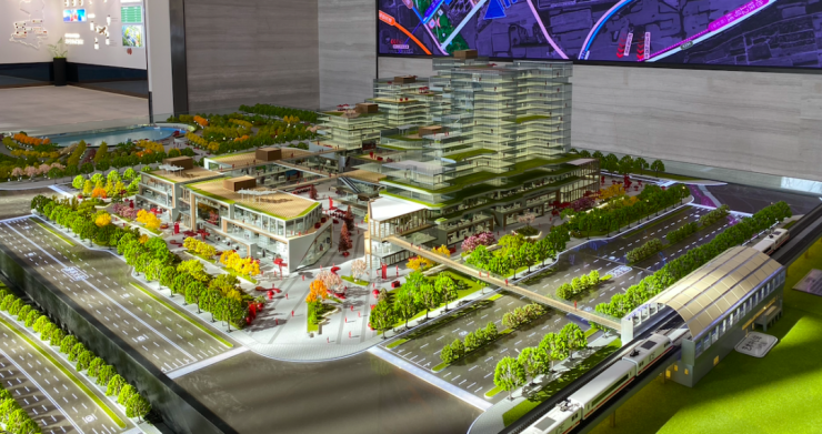 从下面沙盘上看,苏宁广场将重新规划为创意街区,类似于曲江创意谷的操作手法,是熟悉的配方和味道。