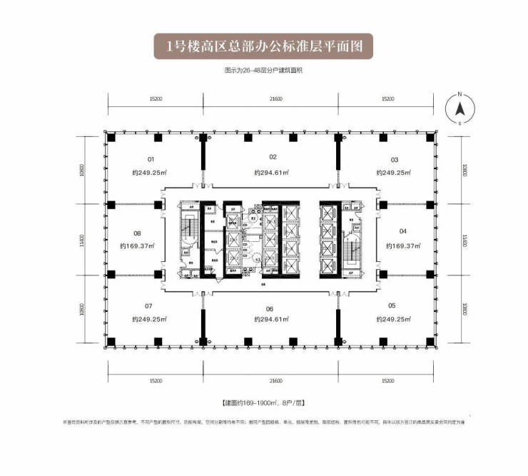 1号楼总高48层,建筑面积约169-1900平米甲级5A总部办公户内毛坯,公区精装,全景玻璃幕墙层高4米,全楼使用24小时VRV空调系统,7*24小时护航