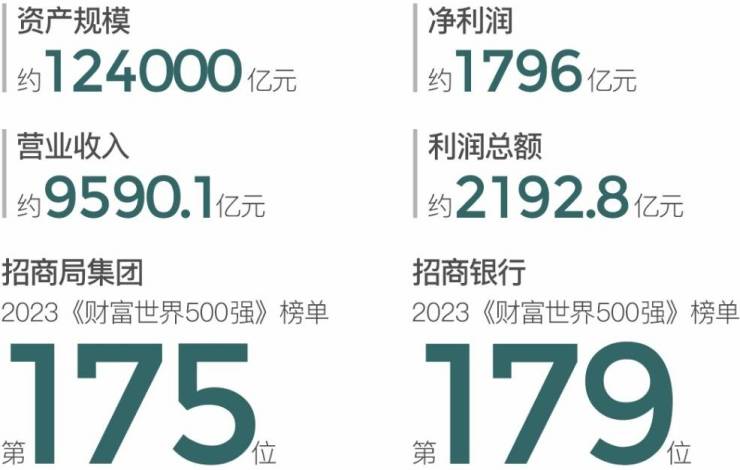 2022年,招商局资产规模约124000亿元,营业收入约9590亿元净利润约1796亿元,连续18年荣获国务院国资委经营业绩考核A级连续六个任期荣获“业绩优秀企业”8月2日发布的2023年《财富》世界500强榜单中,招商局集团、招商银行连续多年双双入榜。