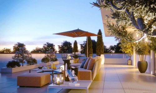 面对这样的问题,也有部分第四代住宅对露台私密性上优化升级,在檐口和露台侧方设计隐私挡板,最大程度规避了奇偶户型之间的视线干扰,在一定程度上保障隐私。