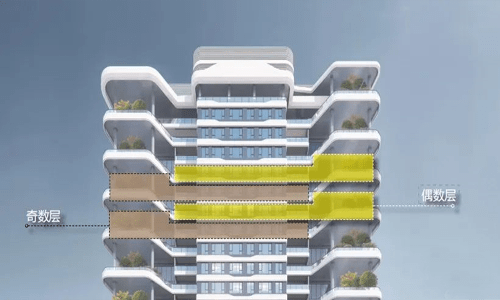 此外,还有错位的二层通高阳台形式,包含水平向阳台错位和转角阳台错位两形式。