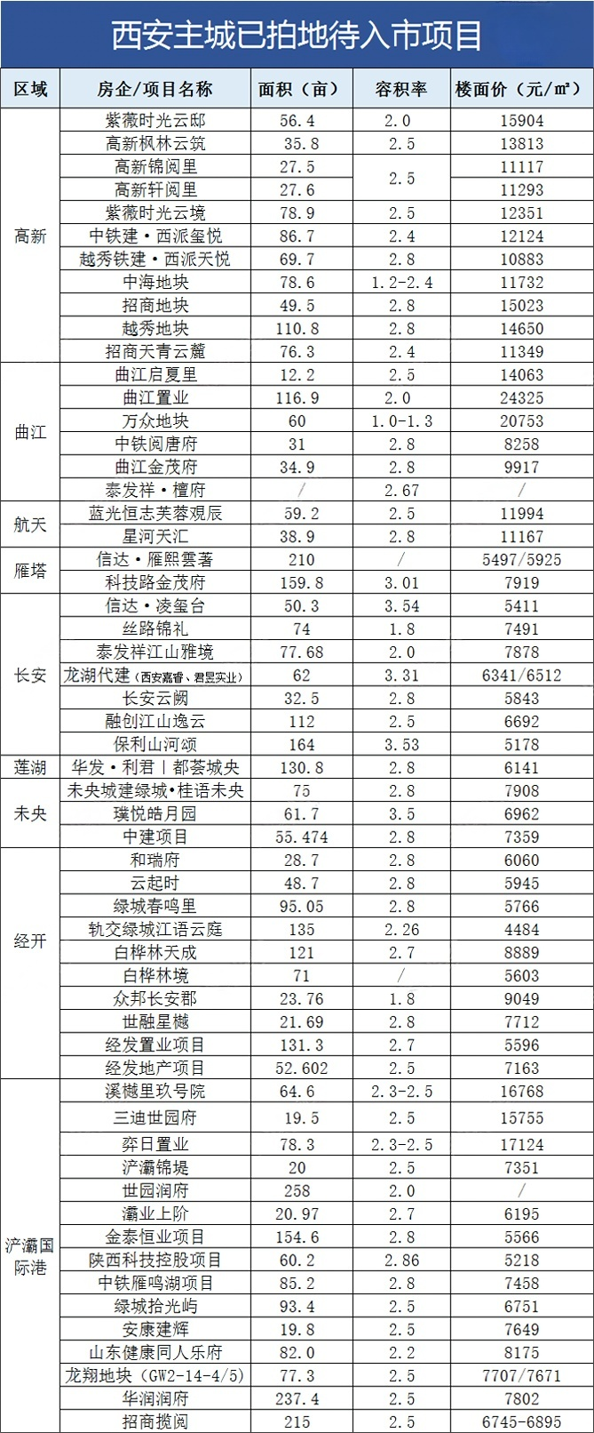 此外,经开高铁新城、未央团结村片区、长安区等也将是今年新房供应的主力。