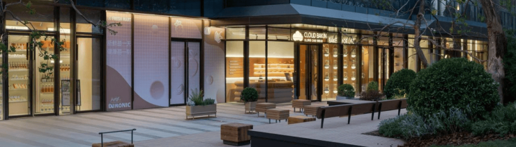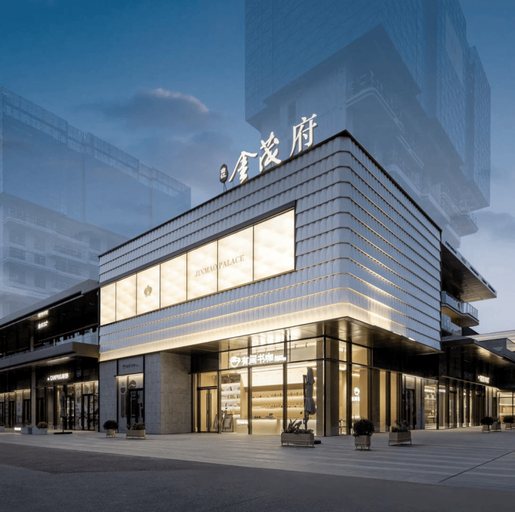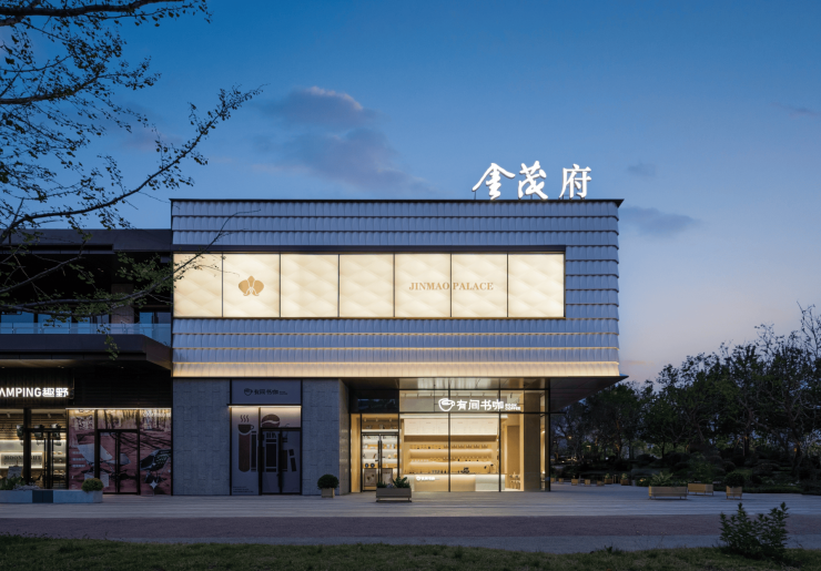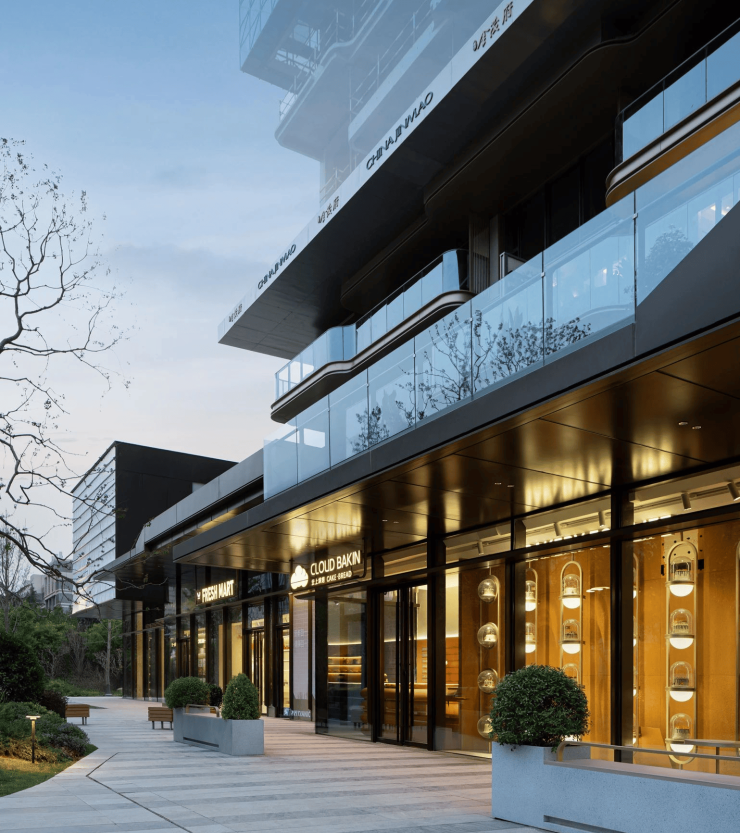 约300米开放街区,多面展示引流,焕新消费体验阿鲁克班铝板&大玻璃幕墙艺术美学