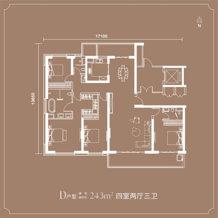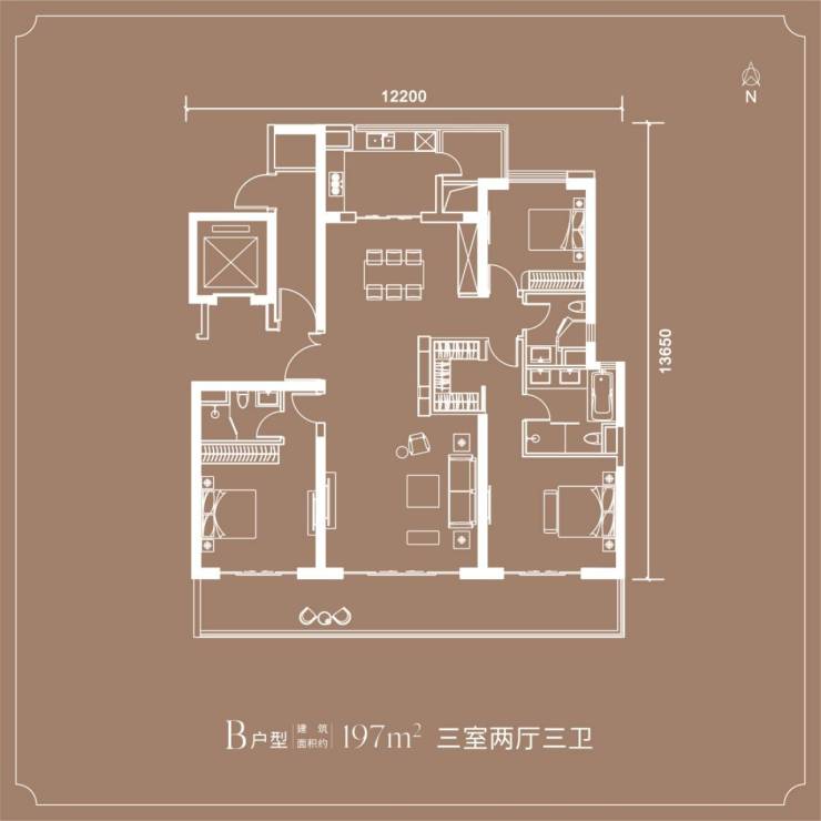 在售约197-243㎡环幕宽景,四室朝南,南向采光,约12米舒阔景致,营造尺度生活。