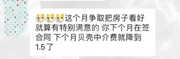 先是有购房者收到经纪人的消息:12月后签约,中介费可以降到1.5%。