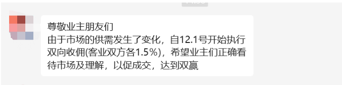 随后业主也开始陆续收到消息:12月开始双边收佣,希望业主们正确看待及理解。