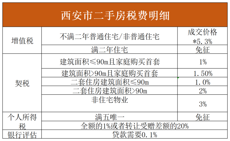 以100㎡,总价150万,满五唯一二手房为例,中介费(1.5%)+契税(1.5%)、增值税/个税(0)+5000左右的权证费用=5万。
