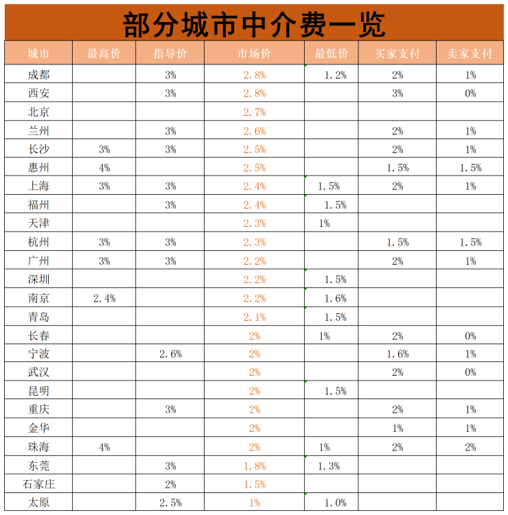 6月份易居研究院发布的一份数据显示,全国25个重点城市中介费率平均2.2%,西安中介费以2.8%的中介费率与成都并列全国第一。