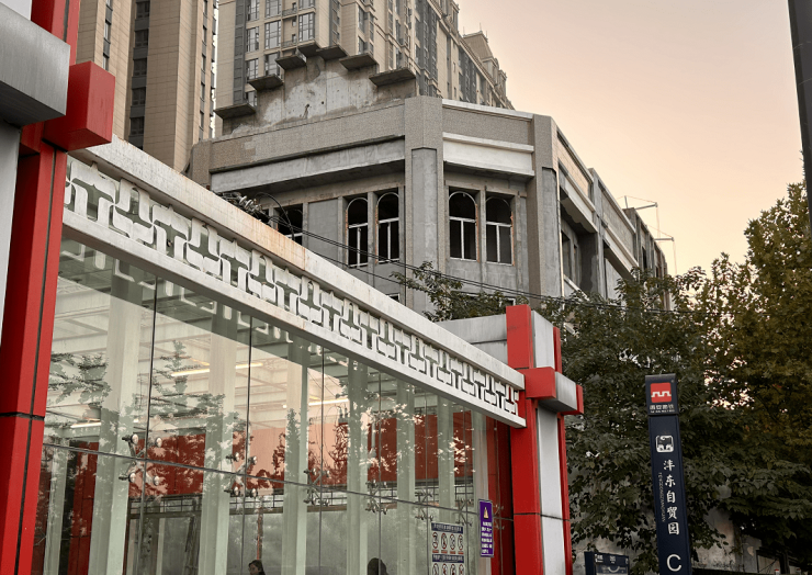 乘坐地铁一号线,从沣东自贸园站C口出,映入眼帘的便是恒大都市广场的烂尾商业项目,紧邻小区北侧住宅楼,水泥裸露在外的楼体和已交付的住宅楼形成鲜明对比。