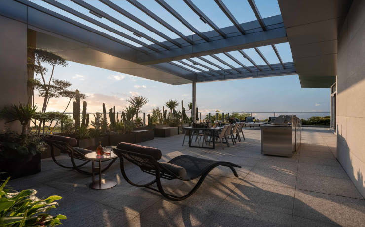 环幕顶奢大平层、私享户内泳池、度假式高端体验项目占地约 75 亩,近 45亩绿荫萦绕,项目以 6-7 层低密设计,约 28-300 米楼间距,还有顶跃露台、底层藏约半亩-一亩庭院,形成了“有天有地”的体验感,规划有 3 梯 2 户及 2 梯 1 户,户型建面约 460-880 ㎡、层高约 3.5-4.4 米,尺度达到了市场天花板。装修交付,餐客厅约 160 ㎡的环幕通厅、室内泳池、专业酒窖、咖啡厅、瑜伽馆、健身房、中西餐厅、SPA 馆、双衣帽间的设计与配置,待售户型约 499 ㎡、515 ㎡。