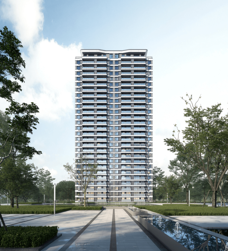 项目建筑设计由享誉业界的上海同济打造,上海中心、上海自然博物馆等地标性建筑皆出自其手。项目为公建化外立面,大量使用“高端铝板+浅蓝色玻璃”,辅助横向腰线线条,在色彩上使用浅灰色和米白色,将艺术的美感和建筑的气韵完美结合,“颜值”爆表。