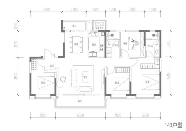 项目首开产品为1#、11#两栋毛坯小高,均价16907.25元/㎡,面积约为132、143㎡。在竞争最为激烈的143㎡户型中,中国铁建·西派逸园项目设计出了独有的亮点。
