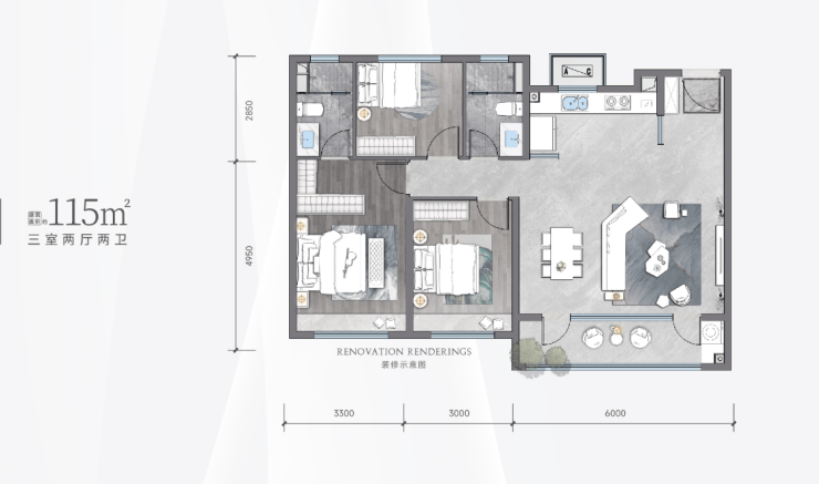 1、115㎡三室两厅两卫