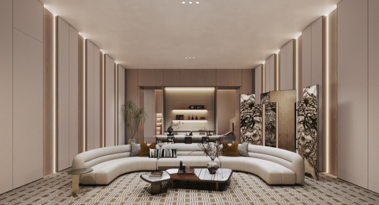 试问当代的什么空间才能匹配唐风建筑恢宏的气势?凤鸣海棠试图通过营造13米高巨幕立体无界感的会所来回应时代的绝唱。