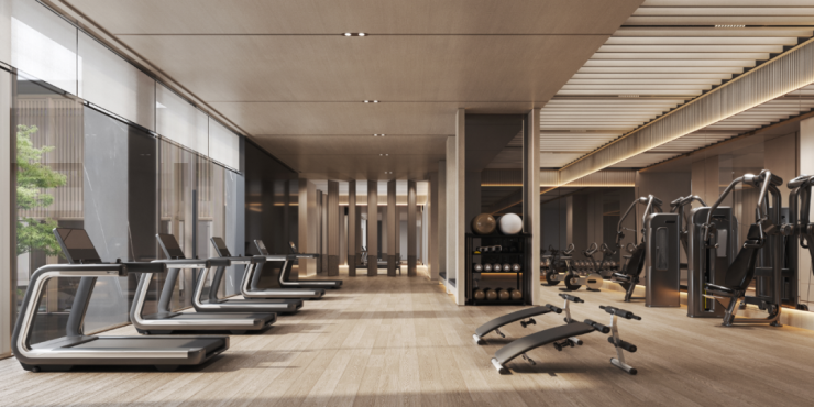 最妙的是,泳池一侧墙面采用双面玻璃,可观赏下沉式庭院的景致,一面为曲面奢石的定制以及金属与景观的呼应,建构出了一段双龙聚首的雄伟景象,在月光洒落之下演绎着盛唐的经典。豪华健身房,体量是高新区最大的一个!力量区、私教区、有氧区等,器械均为与顶尖酒店同款的国际一线健身器材。