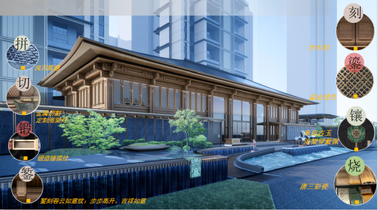 工艺示意无独有偶,把绿城多年积攒的匠人工艺,用于盛世唐风代表作中!绿城为海棠三章而精研的“唐风八大工”——拼、锻、錾、刻、鎏、雕、镶、烧,在凤鸣海棠的大门中被完整的诠释,并将海棠纹、卷云如意纹等多种纹样植入其中,形成穿越时间的匠心共鸣。