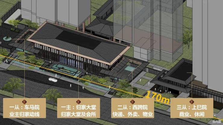 通关今天的地产语言,那就是圈层社交以及园林的打造。于是凤鸣海棠便以《韩熙载夜宴图》为蓝图,建构出五大归家盛景,形成古今融合的当代生活景观场所。