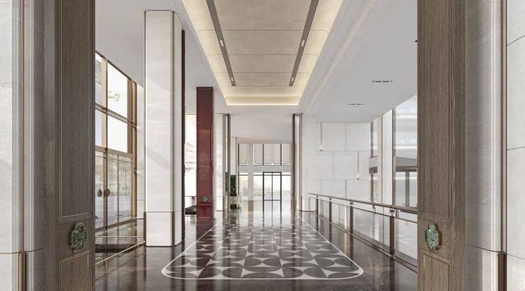 仅有尺度不足以称为绿城!最令人瞠目结舌的是,主入户空间以素有“盛唐第一门”——大明宫丹凤门为灵感,打造的是面阔九间三门+庑殿顶!《易·文言》称,“乾玄用九,乃见天则”九乃帝王之数,此时唐诗中“九天阊阖开宫殿,万国衣冠拜冕旒”也映照到了现实,一眼便魂穿千年!